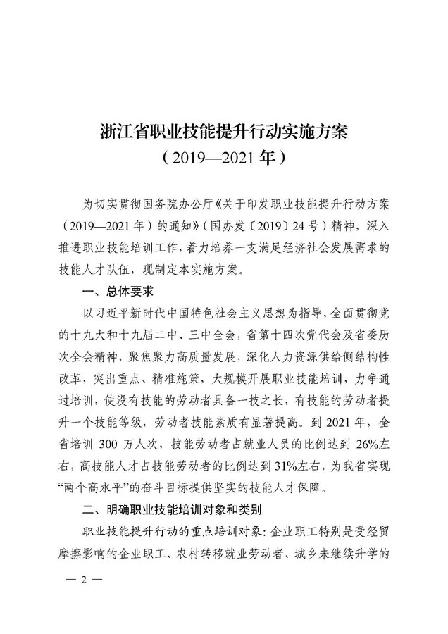 浙江省人力资源和社会保障厅 浙江省财政厅关于印发《浙江省职业技能提升行动实施方案(2019-2021年)》的通知